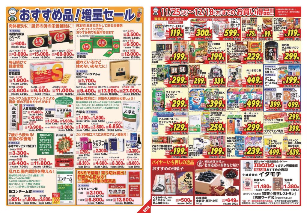 医薬品・日用品・化粧品等のお買い得品やおすすめ品を沢山ご用意しております!